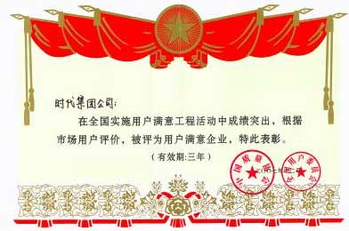 時(shí)代集團(tuán)公司榮獲“全國用戶滿意企業(yè)”稱號(hào)