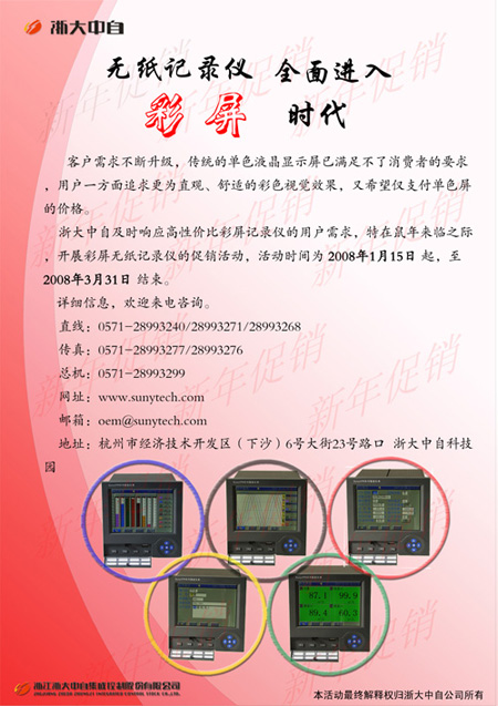 2008-06-27浙大中自08款SunyVPR130RC藍(lán)屏單色無(wú)紙記錄儀全面上市