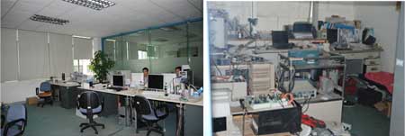 現(xiàn)在我可要重點談?wù)勂諅鞯难邪l(fā)中心了。它占據(jù)了另一層樓面的1/2位置,可見公司的重視程度,當(dāng)我路過其中一間緊閉的房時,透過玻璃門,可以看到里面堆得滿滿的資料,其中還一張小小的簡易床和一雙鞋,當(dāng)我疑惑地問起時,普傳的人員笑著給我介紹說這是總工的辦公室。這可是一個對工作極其投入的人,有時到了關(guān)鍵時期,連吃住都是在公司的,我想也應(yīng)該是一個非常嚴(yán)肅的人吧?可當(dāng)我有機會目睹時卻是出乎我意料的年輕。我不禁想到普傳公司的張海杰總經(jīng)理曾經(jīng)說過的話,他說希望公司上下都能有80后(80年代后出生的人群)的心態(tài)——激情、向上、充滿活力與創(chuàng)想。在研發(fā)實驗室里,除了高檔的DSP開發(fā)裝置、變頻器試驗系統(tǒng)、新研制的樣機、國外技術(shù)資料外,我見到了那位在生產(chǎn)線實習(xí)了兩年的人員,因為他正在很忙碌地工作著,我就沒有打擾他,但我想這兩年的沉淀對于他來說是非常有益的,只要他理解。