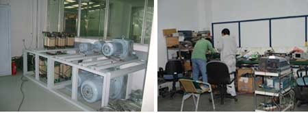 該棟大廈普傳科技占據(jù)了兩層樓面,一層作為研發(fā)中心,一層作為生產(chǎn)區(qū)域。在國產(chǎn)變頻器生產(chǎn)企業(yè)中,普傳的銷售業(yè)績應(yīng)當(dāng)屬于中間偏上,但他對研發(fā)所投入的力量卻是在前列。和所有發(fā)展了幾年較為穩(wěn)定的深圳國產(chǎn)變頻器企業(yè)一樣,普傳也面臨著生產(chǎn)規(guī)模急需擴大和區(qū)域受限的問題,一層樓面上,庫房占據(jù)了約1/3,而另外一邊的生產(chǎn)線已經(jīng)可以看出很緊張了。2007年普傳購入了PCB板自動檢測設(shè)備、自動噴漆設(shè)備、基于GPIB的電機帶載測試設(shè)備電動汽車電機測試系統(tǒng)等檢測裝備,建立了國內(nèi)領(lǐng)先的A&D實驗中心,更進一步保證了產(chǎn)品的可靠性。原來靠人工檢測難免會有誤差,而且耗時,效率低,采用了新的檢測設(shè)備后效率比之前提高了近10倍。