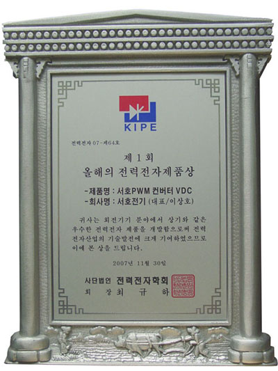 SEOHO獲得了總會(huì)電力電子學(xué)會(huì)的第一屆“當(dāng)年電力電子產(chǎn)品獎(jiǎng)”