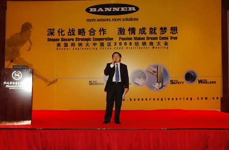 編者按: 美國(guó)邦納工程公司,總部位于美國(guó)的明尼蘇達(dá)州,創(chuàng)建于1966年,是當(dāng)今世界最大的光電開(kāi)關(guān)、測(cè)量檢測(cè)和安全產(chǎn)品的專(zhuān)業(yè)制造商之一。 2008年3月10號(hào),在春光明媚、萬(wàn)物復(fù)蘇的陽(yáng)春三月,邦納以“深化戰(zhàn)略合作 激情成就夢(mèng)想”為主題召開(kāi)美國(guó)邦納2008年經(jīng)銷(xiāo)商大會(huì)。