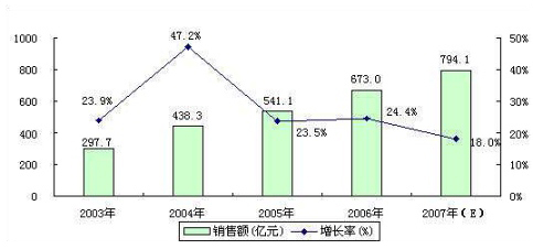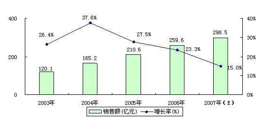 圖1 2003-2007年中國功率器件市場規(guī)模[/align]