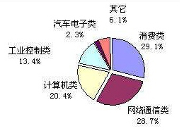 電源管理芯片主要應(yīng)用于計算機、網(wǎng)絡(luò)通信、消費電子和工業(yè)控制等領(lǐng)域,此外,汽車電子領(lǐng)域雖然所占市場份額較小,但卻是發(fā)展最快的領(lǐng)域。從未來的發(fā)展來看,汽車電子領(lǐng)域仍將是發(fā)展最快的領(lǐng)域,其市場份額在未來幾年將快速提高,此外,網(wǎng)絡(luò)通信也將在3G等應(yīng)用的帶動下保持快速的發(fā)展,其市場份額也將穩(wěn)步提高,消費電子、計算機和工業(yè)控制領(lǐng)域的發(fā)展則會相對穩(wěn)定。