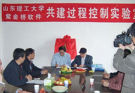 2008年4月18日,紫金橋軟件技術有限公司與山東理工大學計算機學院正式簽訂校企合作協議,雙方宣布共同組建“紫金橋軟件生產過程控制實驗室”,揭牌儀式在計算機學院會議室舉行。山東理工大學校黨委常委、副校長杜瑞成,紫金橋軟件技術有限公司副總經理、紫金橋軟件首席構架師李彥青,山東理工大學校實驗與國有資產管理處、計算機學院院長王振友教授、副院長蘇東順教授、副院長田愛奎博士及相關負責人和部分教師代表出席了簽約及揭牌儀式。