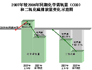注明:按往年電力二氧化硫排放績效5.7克/千瓦時、二氧化碳排放績效1050克/千瓦時推算,2007年電力污染物排放量約為二氧化硫1538萬噸、二氧化碳28億噸。