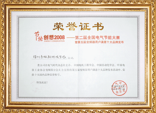微能科技榮獲“變頻器用戶滿意十大品牌”