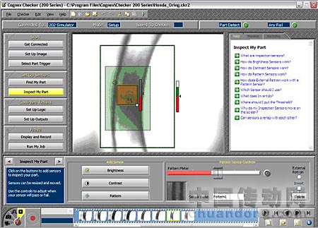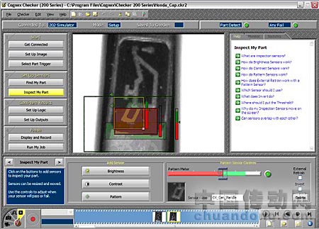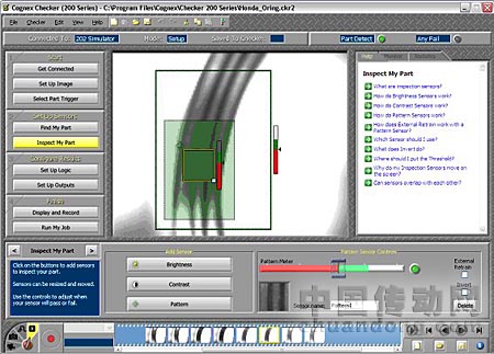 為了探測(cè)該應(yīng)用中反向的O形圈,Champion先生通過(guò)先訓(xùn)練元件查找傳感器如何查找圖像中的O形圈來(lái)設(shè)置Checker 202,然后將一個(gè)圖案?jìng)鞲衅鞫ㄎ辉谡_的位置中,驗(yàn)證是否有密封焊道。