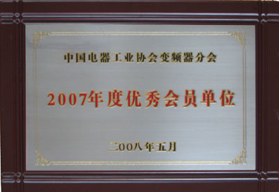 上海格立特被授予中國電器工業(yè)協(xié)會變頻器分會2007年度優(yōu)秀會員單位