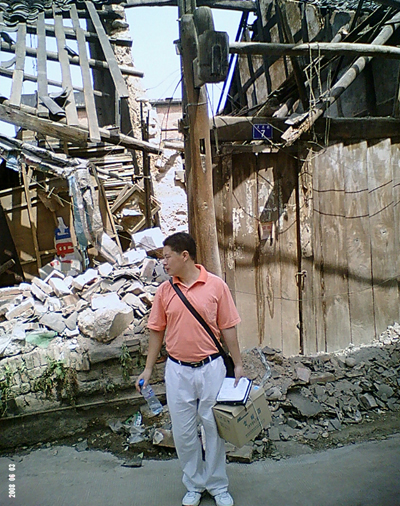 圖為嚴(yán)經(jīng)理一行在倒塌的街道之間尋找前進(jìn)的路