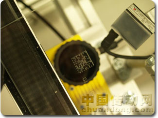 編碼被用于激光系統(tǒng)雕刻。挑戰(zhàn)以選擇合適的視覺系統(tǒng)讀碼的形式出現(xiàn)。對于玻璃上的激光數(shù)據(jù)矩陣碼來說,真正的難題是雕刻與周圍表面間的低對比度。各種產(chǎn)品經(jīng)檢測后,便決定使用康耐視In-Sight 5400/5100視覺系統(tǒng)。該系統(tǒng)能在難以識別的表面及超過2米的讀碼距離的進程中,檢測并解譯難解的代碼。19個處理步驟遵循著激光、包括基底涂層應(yīng)用的所謂模板“生產(chǎn)”以及隨后的激光構(gòu)造賦予模板其細胞形狀。質(zhì)量檢查在此刻非常重要,是模板清洗后的關(guān)鍵生產(chǎn)步驟。模板有適用于600°C的CIS涂層。經(jīng)過增加緩沖涂層的化學處理后,數(shù)據(jù)矩陣再次被檢測。隨后將氧化鋅用于太陽能電池的可透光前觸點完成光電二極管。在之后的最終完成階段,將模板上轉(zhuǎn)出的額外孔作為導向電子設(shè)備的觸體。