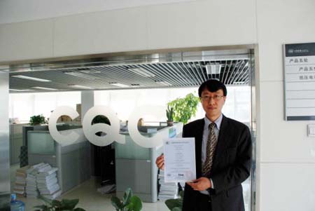 周世意先生代表伊頓電氣在CQC中心領(lǐng)取GX系列CQC證書[/align]