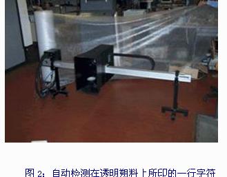 在圖2中被檢驗的文字是在透明的塑料上。機器人首先停止傳送帶,并勻速移動檢測頭,識別系統(tǒng)在幾個特定的位置自動檢測識別所印文字和符號。塑料再起動一定長度,機器人反向運動,檢測系統(tǒng)開始該行產(chǎn)品的自動檢驗識別。