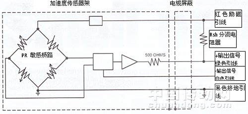 使用不擴大加速度傳感器的用戶非常熟悉分路校準或分路試驗。但對很多試驗專家以及用戶來說,這種分路能力需要擴大單元裝置(圖2)——并受限于所用的校準和試驗儀器。實質(zhì)上,這種試驗可以使用戶通過安裝在結(jié)構(gòu)上的裝置以電子模擬加速度的靜態(tài)變化,而這種模擬是通過用戶所選的具有預設(shè)值的分流電阻器合并輸出信號線與電壓電勢來實現(xiàn)的(圖5)。