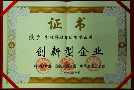 中控集團榮獲中國首批“創(chuàng)新型企業(yè)”稱號