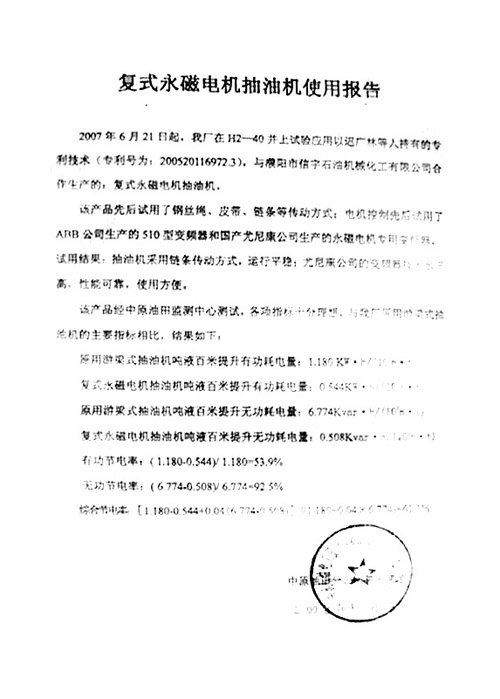 導(dǎo)語:2007年11月,中原油田分公司出具用戶報(bào)告