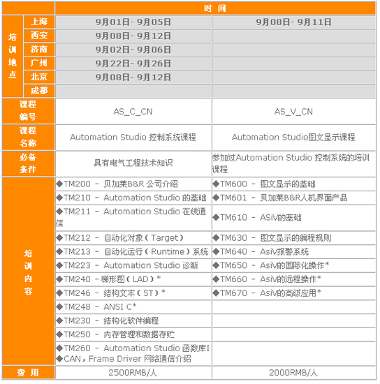 貝加萊08年9月份技術培訓課程