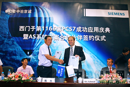 編者按:SIMATIC PCS7在華第1166套成功應(yīng)用慶典在京舉行,西門子與北京京誠瑞達(dá)公司簽訂了自動化系統(tǒng)解決方案合作伙伴項(xiàng)目戰(zhàn)略協(xié)議。 2008年8月25日,西門子SIMATIC PCS7第1166套成功應(yīng)用在北京中冶京誠舉行,同時(shí),西門子與北京京誠瑞達(dá)公司簽訂了自動化系統(tǒng)解決方案合作伙伴項(xiàng)目戰(zhàn)略協(xié)議。中冶京誠工程技術(shù)有限公司副總裁、京誠瑞達(dá)電氣工程技術(shù)有限公司董事長陳杰先生,京誠瑞達(dá)電氣工程技術(shù)有限公司總經(jīng)理張寶嶺先生,承德鋼鐵副廠長李華陽先生,西門子(中國)有限公司及工業(yè)自動化與驅(qū)動技術(shù)集團(tuán)高級副總裁施密德先生,西門子(中國)有限公司工業(yè)自動化與驅(qū)動技術(shù)集團(tuán)自動化系統(tǒng)部總經(jīng)理斐德思等出席了儀式并致辭。