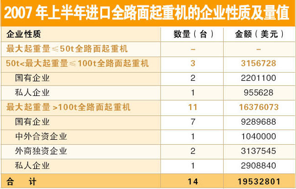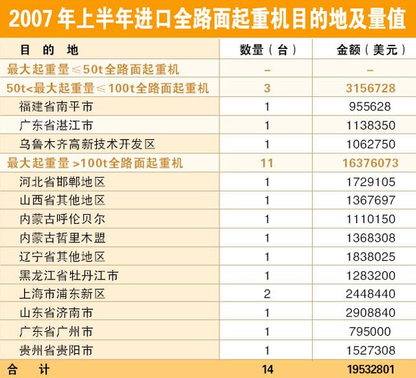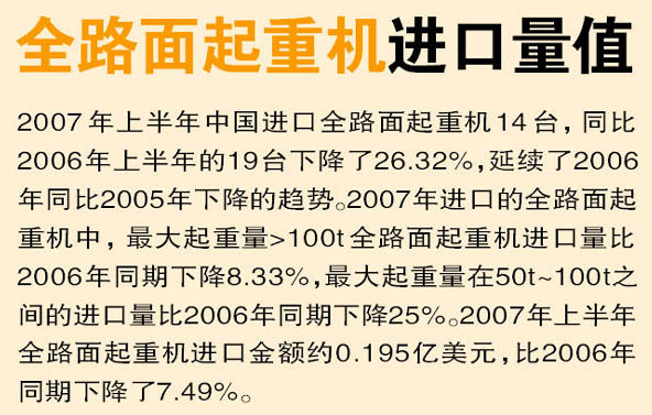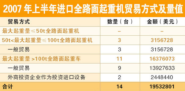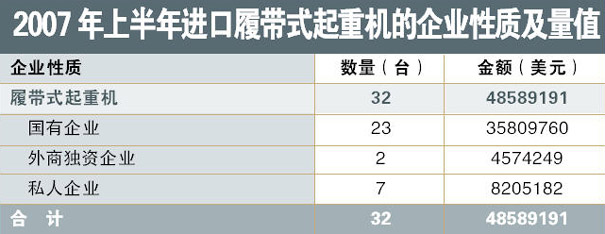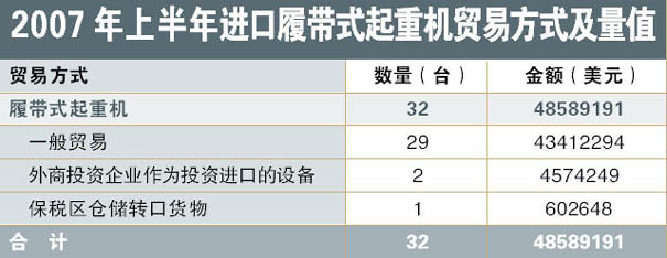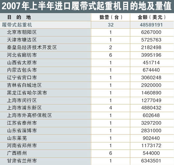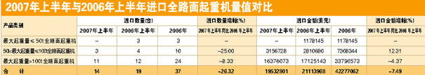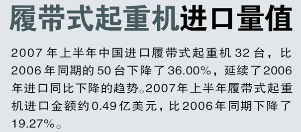 導語:2007年上半年中國起重機進口量值