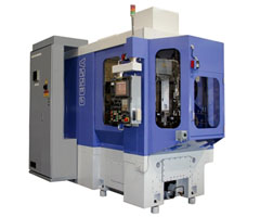 The new GE25A, based on the current GE25A system, is now equipped with a gear-tooth chamfering device. In customer‘s preference, the new machine is also available with a new hob introduced earlier this month, which uses Dry Cut III thin-film coating technology. Through these refinements, the new GE25A achieves a high-speed cycle time of 40 seconds for a final reduction gear of passenger cars together with highly precise hobbing capability. The elimination of chamfering after the hobbing machine, which has been required for the previous GE25A model, enables more compact gear cutting lines.
