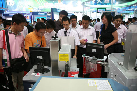 工作人員向客戶介紹大族激光產(chǎn)品[/align]