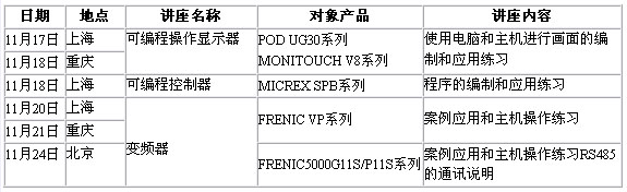 11月份富士電機FA講座日程表