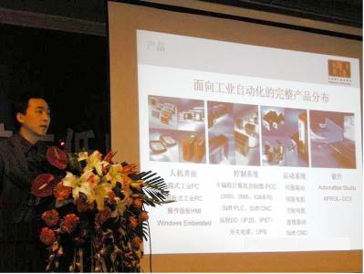 貝加萊成都分公司經(jīng)理楊鵬向與會者介紹貝加萊產(chǎn)品和技術[/align]