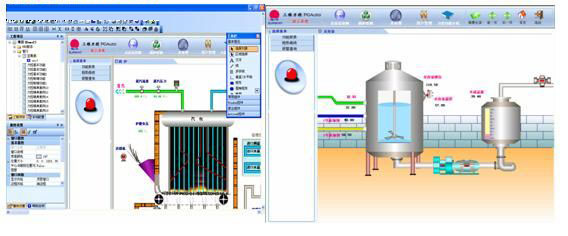 方便、靈活的開發(fā)環(huán)境,提供各種工程、畫面模板、可嵌入各種格式(BMP、GIF、JPG、JPEG、CAD等)的圖片,方便畫面制作,大大降低了組態(tài)開發(fā)的工作量;