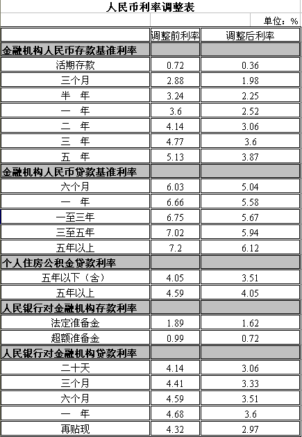 人民銀行決定下調(diào)存貸款基準(zhǔn)利率存款準(zhǔn)備金率