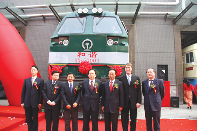 導語:11月25日,采用通用電氣Evolution技術生產的首臺中國主干線機車“和諧”號在江蘇常州正式下線。