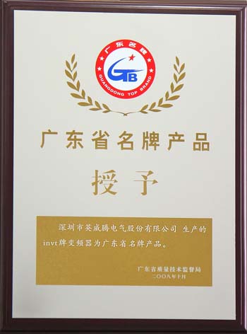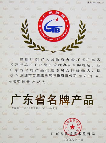 導(dǎo)語:經(jīng)廣東省名牌產(chǎn)品推進(jìn)委員會評價確認(rèn),特授予深圳市英威騰電氣股份有限公司生產(chǎn)的invt牌變頻器產(chǎn)品為廣東省名牌產(chǎn)品。