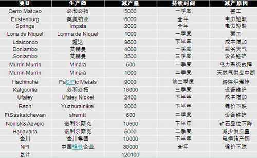 原料市場同樣令人堪憂,全球鎳市場2007年已供大于求,08年全球鎳廠商減產(chǎn)力度很大,諾里爾斯克、必和必拓、金川等世界最大鎳廠家都宣布減產(chǎn)計劃,已統(tǒng)計減產(chǎn)量預計超過全年產(chǎn)量的9%,但由于需求疲軟,加上新產(chǎn)能的增加,預計今年鎳仍會出現(xiàn)供大于求的局面。