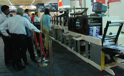 導語:紐博泰展示了幅寬為330 mm 8組單元的FB-3300伺服UV柔印機,它是紐博泰印度與其合作伙伴Proteck Machinery公司的第一臺FB伺服印刷機