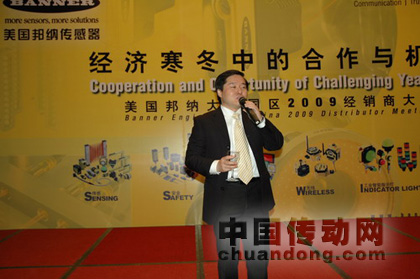 在此次大會上,美國邦納大中華區(qū)董事總經(jīng)理胡勇先生首先回顧了在過去非同尋常的2008年中,邦納公司所面臨的挑戰(zhàn)和取得的成果和進步,過去的一年全球金融風(fēng)暴的影響已經(jīng)波及到了中國企業(yè),中國經(jīng)濟的寒冬已經(jīng)來臨。然后,正如邦納在這幾十年的發(fā)展中所經(jīng)歷的那樣,每一次的經(jīng)濟變革都會給予邦納一次更為快速的成長機會。在此次中國乃至全球的經(jīng)濟寒冬中,要發(fā)展、要再次取得輝煌、要做中國最好的傳感器產(chǎn)品制造商和傳感控制方案提供商,邦納對此充滿著信心!2009年,公司仍將繼續(xù)完善產(chǎn)品線,一大批激動人心的新產(chǎn)品都將陸續(xù)推出,邦納公司也將向進一步發(fā)展蘇州工廠的生產(chǎn)能力,以更好地滿足中國市場的發(fā)展需求。對于中國自動化產(chǎn)業(yè)而言,經(jīng)濟的發(fā)展、用戶的需求多元化、復(fù)雜化、個性化也對生產(chǎn)廠商提出了更高的要求,秉承著“溝通、信賴、支持、發(fā)展、雙贏”五大邦納合作的宗旨,邦納公司和經(jīng)銷商們將在新的一年里互動溝通、精誠合作,邦納的明天會更加美好。