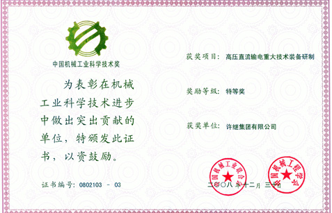 導(dǎo)語:日前,從直流輸電系統(tǒng)部傳來喜訊,許繼集團(tuán)公司申報(bào)的“高壓直流重大技術(shù)裝備研制”項(xiàng)目榮獲中國機(jī)械工業(yè)科學(xué)技術(shù)特等獎。