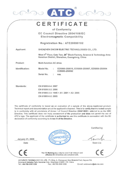 導語:EDS800系列迷你型通用變頻器經過第三方權威認證機構的測試,以優(yōu)秀的性能表現取得歐盟CE認證證書!