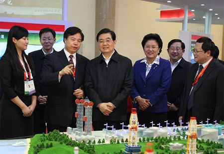 導(dǎo)語:胡錦濤吳邦國溫家寶賈慶林習(xí)近平李克強賀國強周永康參觀2009中國國際節(jié)能減排和新能源科技博覽會
