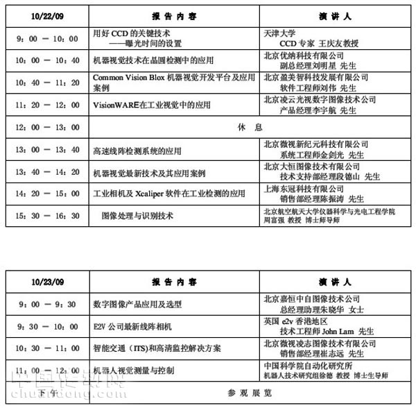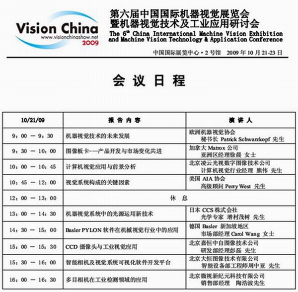 導語:2009年10月21日-23日,“第六屆中國國際機器視覺展覽會暨研討會” 將在北京中國國際展覽中心舉辦。記者剛剛從機器視覺組委會獲悉此次會議主題及報告內(nèi)容已出爐。