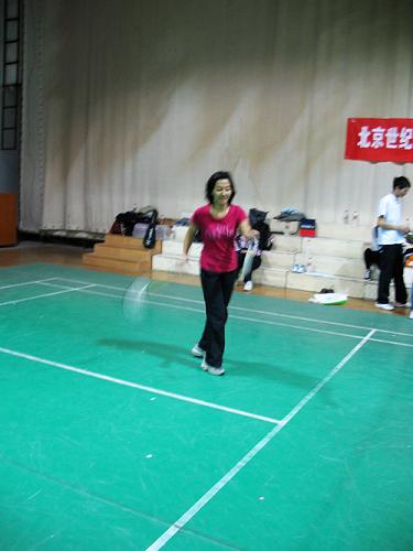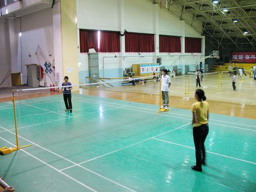 首先進(jìn)行的是混雙的第四組初賽,雖然該組人員的水平較低,但是場(chǎng)外的觀眾仍然發(fā)出陣陣喝彩聲,因?yàn)榇蠹业目谔?hào)是:不徒名次,重在參與!