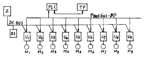 由此大大簡(jiǎn)化了機(jī)械結(jié)構(gòu),降低噪聲減少占地面積提高車速增加單機(jī)產(chǎn)量同時(shí)更改工藝方便加工產(chǎn)品質(zhì)量得到保證。采用多電動(dòng)機(jī)傳動(dòng)后對(duì)各臺(tái)電動(dòng)機(jī)運(yùn)行速度的控制要求更高, 各電動(dòng)機(jī)均需要同步調(diào)速或比例同步調(diào)速、位置跟隨等通常采用PLC控制技術(shù)和網(wǎng)絡(luò)通訊技術(shù)來(lái)實(shí)現(xiàn)。