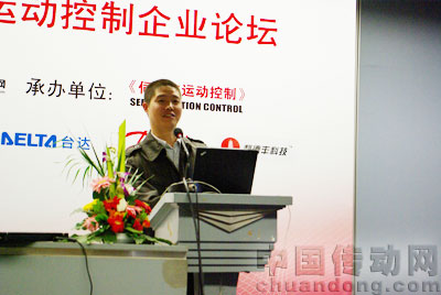 隨后,葆德電氣(上海)有限公司技術(shù)工程師劉曉宇發(fā)表了“基于Ethernet Powerlink的運(yùn)動(dòng)控制技術(shù)”的精彩演講。路斯特傳動(dòng)系統(tǒng)(上海)有限公司王永凡博士向大家介紹了國內(nèi)外伺服驅(qū)動(dòng)的現(xiàn)狀與發(fā)展。其生動(dòng)的案列介紹贏得了大家的高度好評。演講中,王博士主要向大家講述了伺服的應(yīng)用領(lǐng)域、產(chǎn)品的劃分、發(fā)展趨勢、新一代通用性伺服驅(qū)動(dòng)器的特征、國內(nèi)外廠家的一些動(dòng)向等。據(jù)介紹,伺服驅(qū)動(dòng)產(chǎn)品主要應(yīng)用于機(jī)床、生產(chǎn)機(jī)械等領(lǐng)域。功能上分為多軸運(yùn)動(dòng)控制型、可編程型和通用型。而總線技術(shù)、安全技術(shù)、小功率多軸系統(tǒng)、大功率永磁同步電機(jī)的應(yīng)用將是伺服的未來發(fā)展趨勢。對于國外伺服新動(dòng)向,王博士指出國內(nèi)外伺服廠家動(dòng)向表現(xiàn)為歐美廠家設(shè)法進(jìn)入中國的通用型伺服驅(qū)動(dòng)市場、提供從運(yùn)動(dòng)控制到伺服驅(qū)動(dòng)的全套解決方案、國內(nèi)廠家的產(chǎn)品在朝大功率和帶總線通訊的方向發(fā)展、出口小功率伺服電機(jī)。王博士精彩的發(fā)言,淵博的知識,前瞻的見解引起大家的極大關(guān)注。