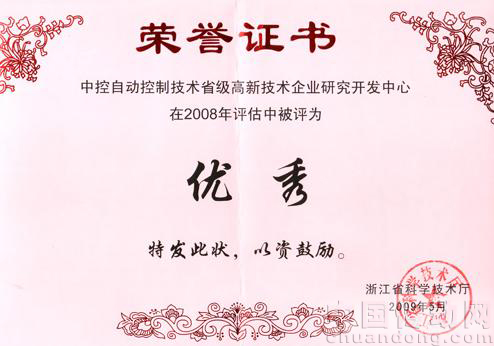 中控自動(dòng)控制技術(shù)研發(fā)中心獲2008年度全省企業(yè)研發(fā)中心評(píng)估中第二
