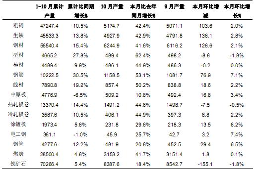 10月鋼鐵產(chǎn)品產(chǎn)量統(tǒng)計(jì)分析