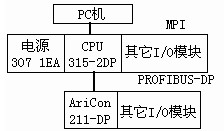 CPU315-2DP是西門子生產(chǎn)的S7系列產(chǎn)品,它的CPU上集成有PROFIBUS-DP通訊接口。AriCon 211-DP是北京金自天正智能控制股份有限公司(以下簡稱金自天正公司)的產(chǎn)品,它的CPU上也集成有PROFIBUS-DP通訊接口。整個(gè)的連接結(jié)構(gòu)如圖1所示。