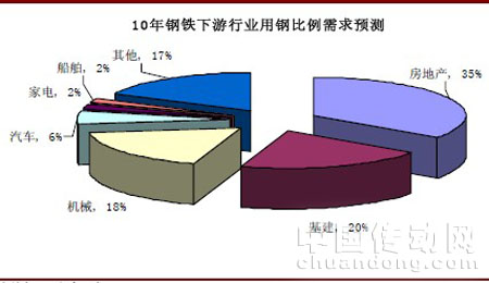 圖 2:2010年鋼鐵下游行業(yè)用鋼需求比例預測