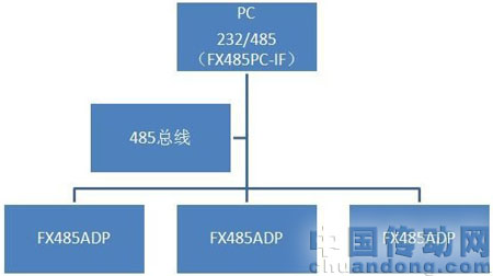 1:N 多個(gè)站(最多16個(gè)站),500米>距離>50米,用FX485驅(qū)動
