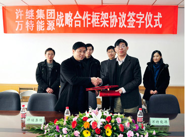 為加強(qiáng)生物質(zhì)發(fā)電領(lǐng)域的市場(chǎng)開(kāi)拓,12月17日,與萬(wàn)特能源投資有限公司簽訂相關(guān)合作協(xié)議,許繼發(fā)電自動(dòng)化系統(tǒng)部經(jīng)理賀勝輝和萬(wàn)特能源投資有限公司總經(jīng)理?xiàng)钣褴姶黼p方在協(xié)議上簽字。
