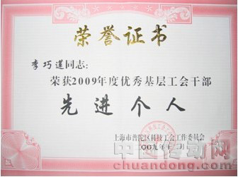 2009年12月27日在普陀區(qū)區(qū)級(jí)機(jī)關(guān)中心召開(kāi)了普陀區(qū)民營(yíng)科技企業(yè)第二屆職工代表大會(huì)第一次會(huì)議,會(huì)上對(duì)2009年度民營(yíng)科技企業(yè)優(yōu)秀工會(huì)特色工作、優(yōu)秀工會(huì)基層干部進(jìn)行了表彰,我公司工會(huì)主席李巧蓮?fù)緲s獲2009年度優(yōu)秀基層工會(huì)干部先進(jìn)個(gè)人稱號(hào)。