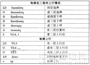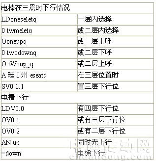 以電梯在三層下行情況為例。當電梯的一或二層有指令時,將三層下行位置1,同時無上行,驅動電梯下行。程序說明如下: