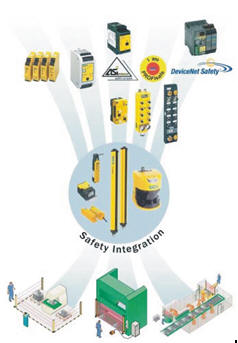 在安全防護(hù)技術(shù)的基礎(chǔ)層面,SICK開(kāi)發(fā)了一站式控制系統(tǒng)解決方案。激光區(qū)域防護(hù)裝置、安全開(kāi)關(guān)、安全光幕、安全繼電器、多功能界面和總線連接模塊,這些設(shè)備可以構(gòu)成一個(gè)完整地自動(dòng)化安全系統(tǒng)。(這些設(shè)備的集成,可以通過(guò)專門的部門來(lái)提供)SICK提供的安全防護(hù)傳感器,可用于構(gòu)建安全總線系統(tǒng)。UE10系列作為安全繼電器,具有評(píng)估和測(cè)試設(shè)備的功能:例如,安全光幕,安全光柵,激光區(qū)域安全防護(hù),安全鎖,急停按鈕以及雙向控制。UE100系列安全控制器提供了更強(qiáng)的邏輯和執(zhí)行功能、應(yīng)用于各種專門的場(chǎng)合。這些設(shè)備對(duì)機(jī)加工設(shè)備進(jìn)行安全防護(hù),同時(shí)配置了安全總線連接模塊,通過(guò)安全總線連接到加工設(shè)備控制系統(tǒng)之中。通過(guò)安全總線,可以把光電式和接觸式安全防護(hù)產(chǎn)品連接為一體。設(shè)備操作手冊(cè),可以作為配置安全防護(hù)設(shè)施的入門方式。
